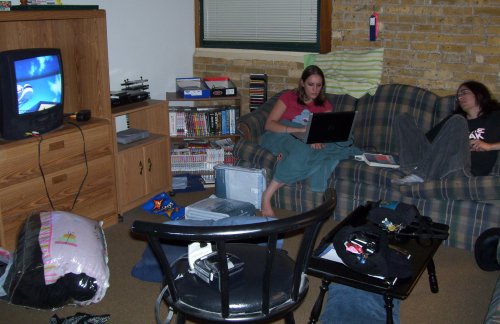 Anyway, this was the Video Game/RPG/Lan room and wouldn'tcha know it, there's No Brand '07 con director RedPracticeNinja and he's hungry too. After poking my head in and seeing a much-improved video game room (helped along by the same folks who produced the famous No Brand game room), we headed off to State Street.