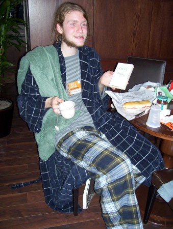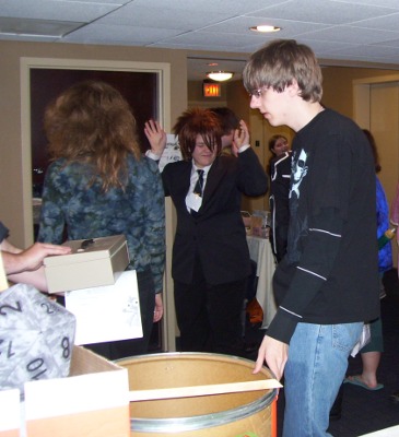 At 10:00 am, the con officially began. A few congoers start trickling in (even though we really didn't start anything until noon) and we are underway.