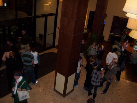 My shift ended at 2:00, giving me an hour to relax. Or, because this is still a convention and we still have to attend to all the other crap that goes with it, get into the hotel room. Sarah and I were rooming with fellow staffers Erin and AJ. It was a chore carrying everything in from the rain, but we were settled in just in time for shift number three: Registration.