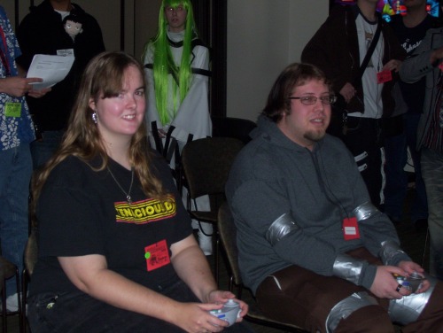 Among the folks I haven't seen in a bit included not just Scott, but also Mike #1, last featured prominently in... well, I don't know if he's ever been featured prominently in a recap, but he was the DDR fanatic mentioned a couple times in that capacity at ACen '03 and '06. We burned almost an hour catching up on each other's life. Old college buddies, you know. I use the term Mike #1 not just because that was his moniker in our anime club, as opposed to Mike #2 who I don't talk about much (let's put it this way- he's the inspiration behind Donovan). It's also because the guy now known simply as Mike in these recaps was also patrolling the grounds. I see him every week at Geek.kon meetings so it's not that big a reunion.