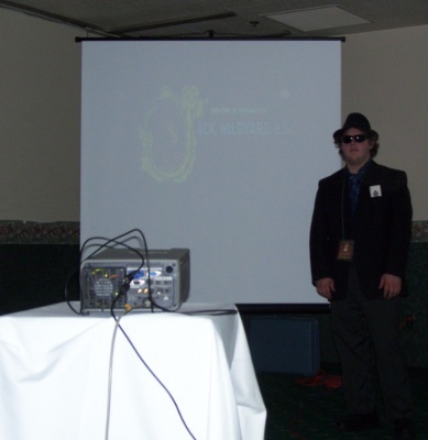 One of my rare visits to the No Mercy Room, where Harley was showing the original Casino Royale movie- more of a send-up of Bond movies, with a campy Monty Python-ish spin on things. With Woody Allen and Orson Welles just as you remember them... caricatured on reruns of The Critic. Sadly, I had to leave for Opening Ceremonies and missed the ending sequence, which I am told is the best part.
