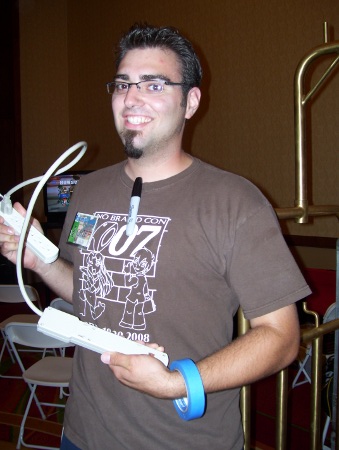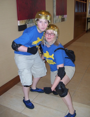 Due to the delay, we had to strike several items off our Friday afternoon agenda (naps, showers, plastering the convention with Geek.Kon posters, etc.), but getting into the hotel room was a must. Evan and I again did our best GAR impersonations to get stuff upstairs. Erin had been advised of a panel on how to spot bootlegs and was gone pretty quickly. She spent much of the convention doing weird stuff like going to panels and anime viewings. Remember when I used to do that? Good times.