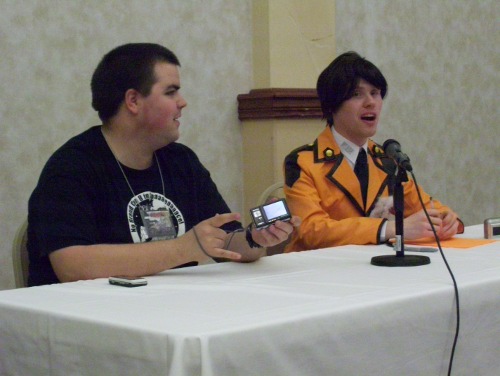 The reason I didn't volunteer here the way I did at Milwaukee was because I figured I'd be helping out at several points during the con anyway. Sort of like last year, where I was moving chairs/Tiffany Grant around viewing rooms/Eau Claire (respectively). This was a false alarm as Yushi was looking for feedback on their cosplay contest's judging system. Sarah ran our masquerade last year and was knowledgeable about stuff like this. I was the host and thus was completely clueless.