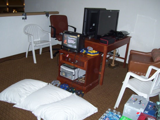 Back upstairs, the room party seemed to be slowing down a bit. Mike was demo-ing some card games and our video game room remained popular, but it wasn't exactly filled to capacity.