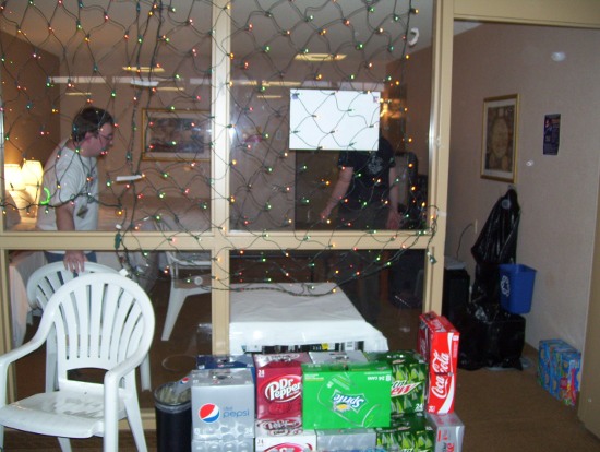 Evan, Mike and Red had managed to make a food run and did a great job setting things up. We had lights, six video game consoles and a ton of board games.