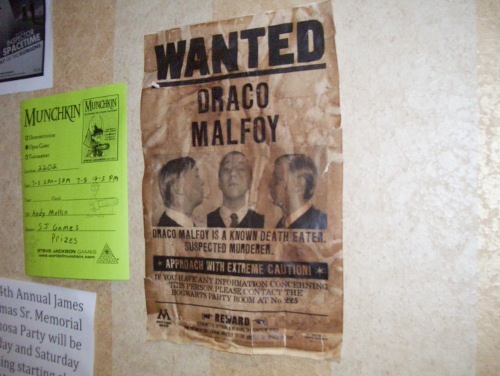 All of our posters were Potter-style wanted posters, stained to all hell to look more natural. We tried to put them in thematically appropriate spots, like Lupin's next to Bad Wolf.