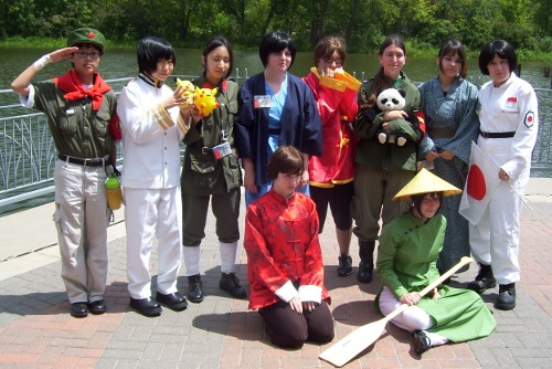 One of the first groups, at least among those I took pictures of (I tend to skip the traditional Axis/Allies pictures and go for the cool countries), the Asians, now with Vietnam! Some guy wandered in with a cosplay that looked like it would fit, so we threw him in there and called him Cambodia.