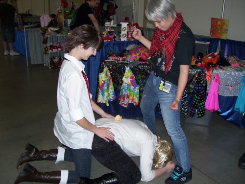 I had left it at John's booth, so I had to scramble all the way to the Vendor Room, get to his booth, grab it, put it on, and scramble all the way back to the photoshoot.