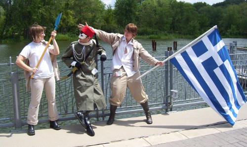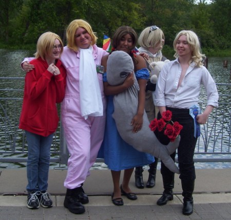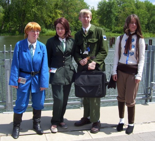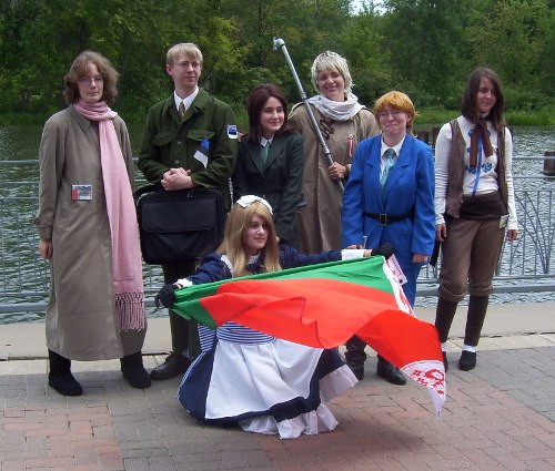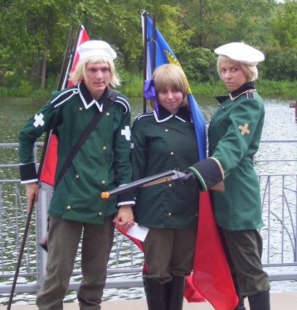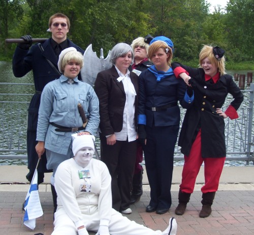 Later that afternoon, the "bad touch trio" of Spain, France and Prussia were hanging out in the Vendor Room and listening to some of the techno from the Day Glow booth.
