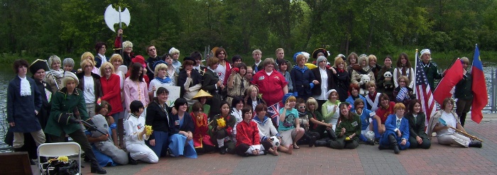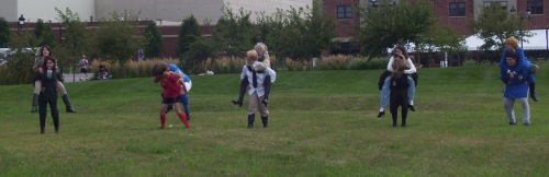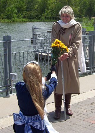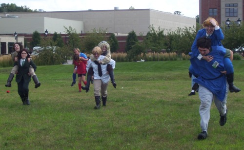 After the shoot, there was supposed to be a "wife-carrying" contest, whatever that was. Apparently, they had one at Anime Milwaukee but I couldn't hear it over the sound of how awesome their Opening Ceremonies was. But we were all in the sun for far too long for people in military-style outfits, so we called for a one-hour recess to enjoy the air conditioning inside for a while.