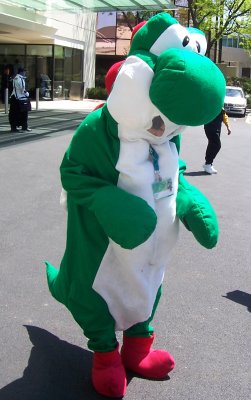 When there's a seven-foot green dinosaur wearing red boots, it's amazing how I absolutely don't need a caption for this picture.