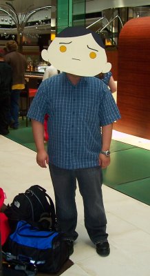 Wading through the throngs of sleep-deprived otaku (and the occasional honest Asian-American doing their normal weekly grocery shopping), Nick got his melon-pan and I gave in to the temptation of buying the Eyeshield art book I had seen in the Dealer's Room- it was five dollars cheaper here (after converting from yen, that is). With both of us refreshed and both of us broke, we headed home to... Waukesha?