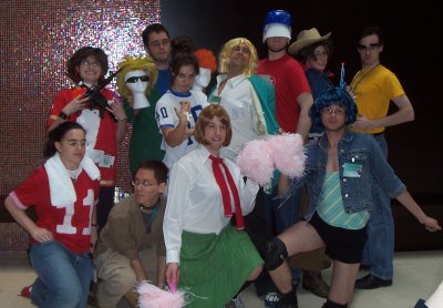 Once the winners were announced, the screening reverted back to the half-hour of the AMV contest they didn't schedule time for during the main screening Friday (great planning there, guys). We stuck around for a few, but left before too long. Fortunately, the big Eyeshield group was already in the lobby posing for pictures. Turns out that this wasn't just any Eyeshield cosplay group...