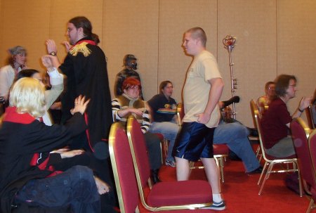 The concept was quite fun, actually- eight people would come up to the stage and engage in a rapid-fire debate on various anime topics. The catch was that each subject was also laced with a random challenge- such as debating in a funny accent or with marshmallows in your mouth. You'd be amazed how long a debate on gothic lolita fashion can last when words like "dress," "cute," "shoes," and "black" were all forbidden.