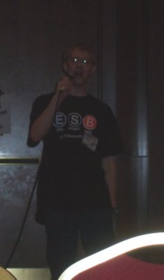 This guy won the Paranoia Agent vs. Utena debate with "A kid with a crooked bat or tons of yuri. What's to discuss?" As the winner, his challenge was to go out to the lobby and shout this argument to the populace- no context whatsoever. It's probably on YouTube by now.