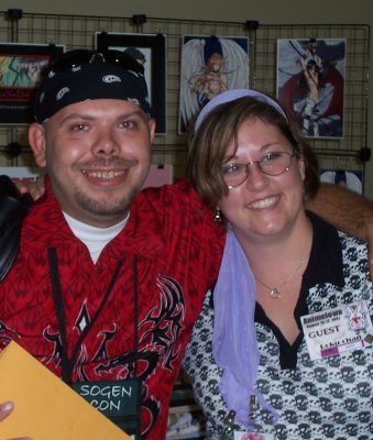 My history with autographs isn't pleasant. It all dates back to Tiffany Grant violating my program book at ACen '02. I'll also confess that Spike Spencer signed the CD when I bought his audiobook this year. It's one of those "comes with the purchase" deals, just as it was with the ONY book. In fact, people have asked for my autograph on more than one occasion in the past (I won't explain the scenarios- it cheapens the effect). I just don't think a mere signature is any match for a hardy conversation, handshake or, in Drazz's case, a fantasy football league rivalry. Sure, Drazz did rib me for being a Packer fan in his autograph (and this after I informed him about last night's Cub victory), but it's not the same as him doing it in person. At conventions like these where guests are so accessible, take a second and talk to them as long as they aren't insanely occupied. If you must have a momento, get a picture: