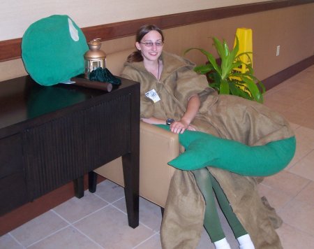 Tonberry Cassie was back, and I'm sure that burlap was fun to walk outside in. We attempted a conversation, interrupted often by picture requests.
