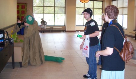 Both the panel's name and description were simply "Cake." This had Jasmine, Joe, and apparently a standing-room-only crowd sold on whatever it offered. I didn't want to put up with the crowd, so I quietly returned to the dealer's room. Perhaps some dinner, a little pachinko, a couple panels before karaoke... yeah, that's the ticket.