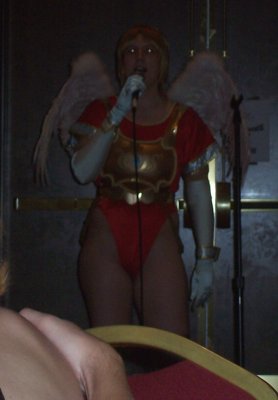 Didn't show them fill flash and night mode on the camera... but you get the idea. Note the Eric Stuart Band t-shirt- and somebody did give me props for it (not the Slayers group, which conspicuously lacked a Gourry).