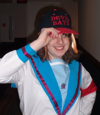 The variety show was up next, and actually had some good acts this year, particularly a Kenshin vs. Kenobi skit and a Powerpoint presentation detailing why Keitaro Urashima was a total idiot for choosing Naru. Even the guests showed off their various talents; Spike Spencer juggled and did some beat-boxing (that's right... Shinji beat-boxing- what happens at the convention...). Unfortunately, I was having a bit of a camera crisis at this time as it appeared that everything from the weekend had magically vanished. I recovered it eventually, but even the melodious power chords of 1337band couldn't pull me from the immense anxiety of losing that hawt pic of Haruhi with the Devil Bat cap (I didn't care about any of the others).
