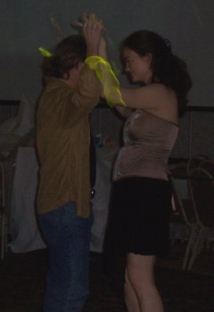 The real dance was just getting started. The guys and I got there a little early, and Events Manager (and Gardening Ninja by night) Trae was goofing off on the mic, enjoying the last few hours of still having a voice. I asked if the dance had started yet. He said no (over the mic). I asked him why not. Trae, bless his heart, turned to me and asked the question on the minds of... well, exactly one person- "Why haven't you finished that fanfic?"