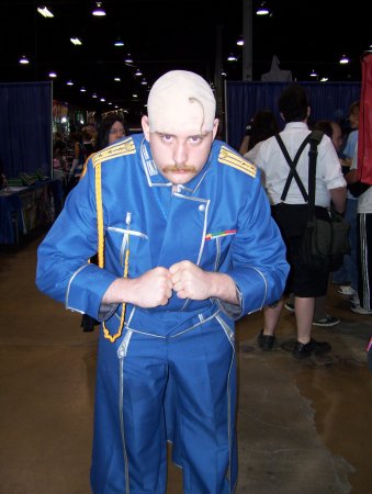 The bald cap makes the whole thing. Inspired by his raw manly magnetism, I claimed a copy of the FMA movie as a reward for my work at the Fast Food booth.