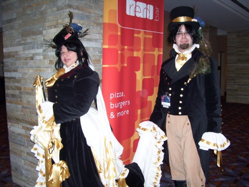 On Thursday's page, I mentioned that I was actually planning to attend the masquerade. Regular recap devotees may note that except for No Brand Con, I have not attended a cosplay contest since Otakon 2003. I even skipped the one at Anime Milwaukee in favor of dinner with friends. Besides the plan to meet up with Megan and a few other Otaku No Yen forum dwellers, there was one big reason for the change of heart: