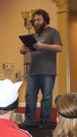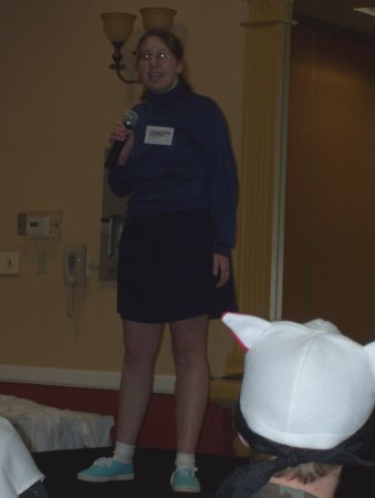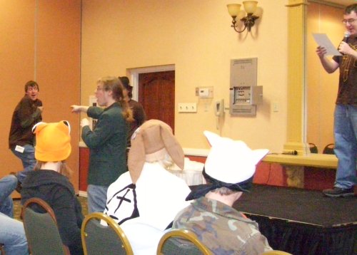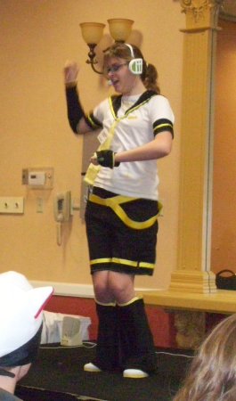 Sarah actually had to leave the room. I tried to muddle through, but the lights weren't exactly pleasing me either and it's hard to just ignore a cute girl that runs away from you in pain. I headed outside to check up on her and discovered that she wasn't the only one. There were actually several victims in light's Death Note and concerned staffers had taken notice. Like Cheesus, for example, convention veteran and on staff despite living in the Duluth area. She went in, told them to cut out the offending lights, which is usually where the story ends. One of the rules for running Midwest conventions: don't piss off Cheesus. It's called Sogen's Law, after a promising Sioux Falls convention that quickly became irrelevant after breaking it in '07.