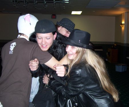 The first hour of the dance was great- anime and J-Pop interspersed with random goodies like Shake The Naughty Body. Then they gave way to a techno set and half the crowd quietly filed out of the room, including... well, most of the recap's principle characters. Outside, after a breather, I saw another forum member, Noel, who I had chatted up a bit earlier in the day. After another short chat, we decided to give the set another go. I got my groove on for another fifteen minutes until we agreed to go outside until the good stuff came up again.