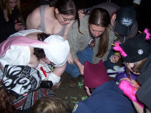 Popular weapons this year included a Guitar Hero controller, inflata-Vinnk, and best of all- another person. One guy grabbed someone else and used him as a bat.