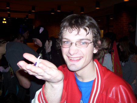 Being 11:00 am on Sunday and lacking anime music and amazing prizes, attendance was sparse. Still, we had plenty of know-how and TWO laptops for reference. We only used mine, but damned if we didn't look professional. To counter that, Miles had one of those keychains that played sound- in this case, the death chime from Super Mario Bros. We used that any time either of us said something stupid... or someone came into the room and left when they saw us up there.