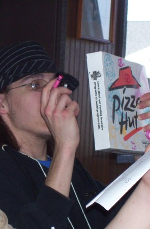After the cosplay over, it was a mad dash to the elevators... then a mad dash to the parking garage elevators that weren't completely full. The dance was forthcoming and the hoagies were wearing off. So Jasmine and Theresa decide to order pizza. They rope me and Tyler into it. Before it arrived, the dance started so we left Theresa to take care of that end while we started to groove.