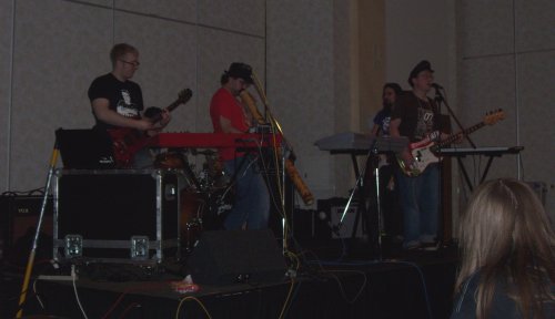 Happy Wednesday followed up with another set, followed by To Slay Zombie Newton. TSZN gets pictured because it's the first band I've seen that brings a didgeridoo onstage. We also got another set from the Slants. What a way to close out the con- when in doubt, rock out until it's time to leave.