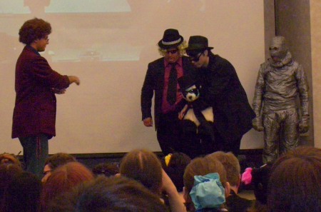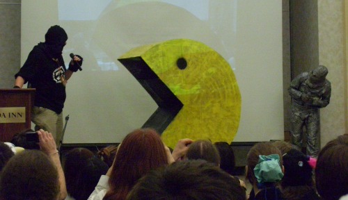 Instead of more antics from Gardening Ninja and Duct Tape Boy, they took the Detour/Iowa route and showed the AMV Contest winners. Oh, that was fun watching everyone flip for Punie-chan. So many people were asking what show it was from. Best part was the woman next to me who asked me what AMVs were before they started rolling. She had a few... questions for me.