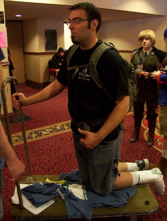 I plugged MST considerably (as did Ri with her Jigsaw), to the approval of Matt (and girlfriend Julie). In a fit of Hetalia-inspired passion, they threw together half-assed Greece and Canada cosplays the night before.