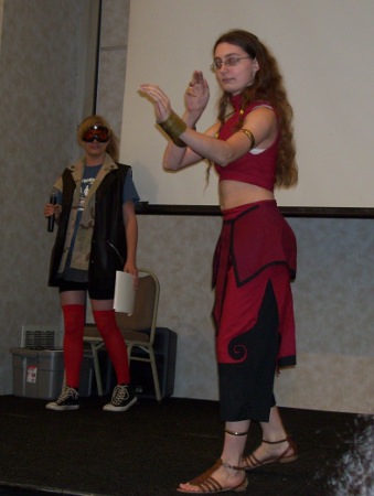After picking up some litter to create the impression that I was being useful, they were about ready to open the doors, but needed one more person to help people find seats without resorting to stampeding. Thus, I ended up as an usher on the far end of the room. They had a count down to make sure both doors opened at the same time. It was kind of neat experiencing the moment from the inside. Yes, I hosted Geek.Kon's masquerade last year, but as host, I was contractually obligated to be a conceited diva completely ignorant of the tireless work performed by the lesser help. Shame too, because those guys work their butts off.