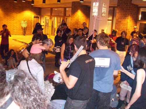 Apparently, Richard and I were having a small room party as well. I hadn't given it much thought, as it wasn't an official Geek.Kon event (or Kitsune Kon for that matter; he's staffing for them now) and I didn't bring much other than a bag of chips and my little portable speaker set (now with inferiority complex!). Still, it was an excuse to open the door and start playing music, even as I was back to checking the internet. Really, we were just killing time until the big pinata party.