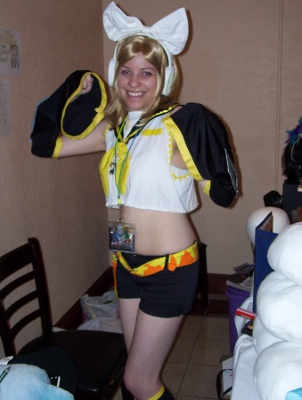 Erika presents "Rave Slut Len" cosplay. Yet another reminder- Len is a male Vocaloid character.