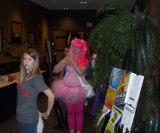 Yeah... uh... apparently I was set to badge the panel wing during the costume contest. Only thing was that there were no panels scheduled against the costume contest. Nobody had reason to go down that hallway. In fact... that particular intersection was being used as the backstage area for the costume contest, so not only did nobody have a reason to go down that hallway, staff refused to let anybody down that hallway.