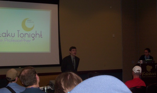 Kenny and I didn't stay for the actual party, as we wanted to check out Otaku Tonight With Professor Pher, a Conan-style late night talk show with a monologue, skits, guests and a musical performance. Kellin and I were the guests at Geek.Kon, and I was especially interested in seeing the show from a not-backstage angle.