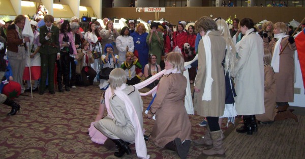 Next item on the list was the AMV Contest, but I was a bit tuckered after all the Russia love and probably would have fallen asleep during the drama category had I went. I ended up going to the Hetalia panel, which was strangely soothing for the disorganized chaos those things always provide.
