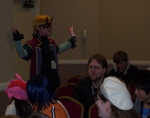 Funny thing about that one... normally 5:00 pm on Saturday is a great time for a panel. Not so much when it's sandwiched in the schedule between boffer fighting and the costume contest's green room. Worse yet, since it appeared as Battle Royale, we speculated that it may have been interpreted as a boffer event itself. There were only about seven people there, with just three who had actually seen/read Battle Royale.