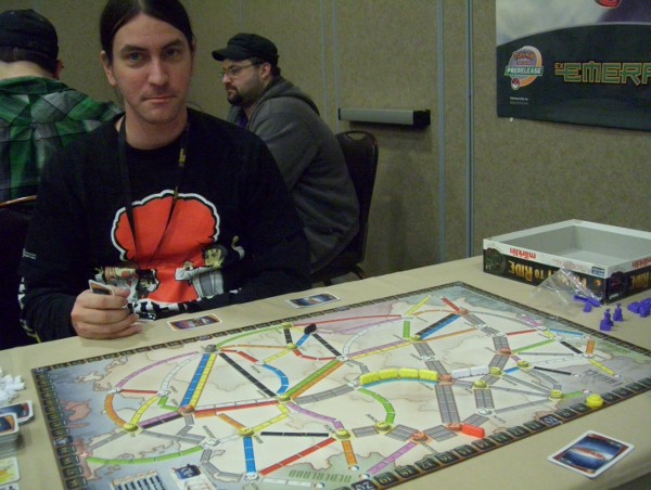 With my schedule now cleared up, we didn't want to waste our time at the convention and were desperate for something other than random hanging out. We found Nick F. randomly hanging out and, rather than just talking for an hour like we normally do, I dragged him and Simone into the tabletop room to find a board game or something.