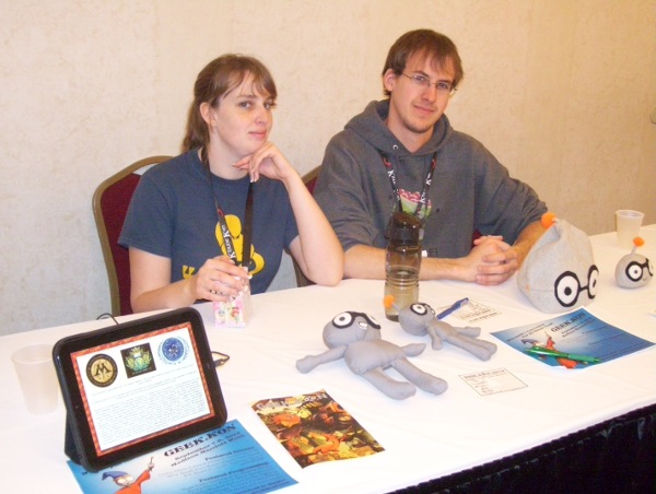 Daisho's people were not only watching our table, but hawking Geek.Kon more aggressively than I ever had. Incidentally, all day Sunday, instead of the normal cycle of pictures, the TouchPad displayed our website's April Fool's joke. But that wasn't all...