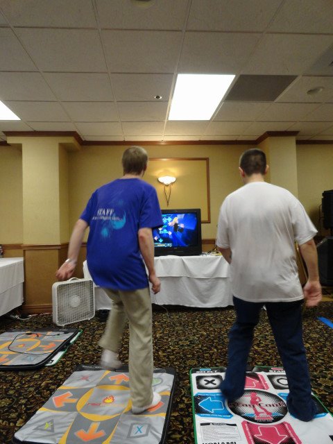 After all that excitement, there was no way we were sleeping, so we headed to the video game room for more competition. Somehow, we ended up in the rhythm gaming section and I was asked to play DDR. Stupidly I said yes, even though I'm well out of my prime and it was 2:30 in the morning.